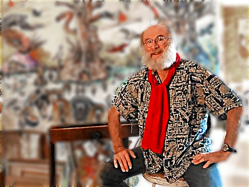 Jo Le Bouder, né en 1947 à Saint-Malo dans une famille d’artistes, revient aux sources avec une œuvre nourrie par son terroir et ses formations aux Beaux-Arts de Rennes et aux arts décoratifs à Paris. Installé à Rothéneuf depuis une décennie, il anime un atelier vibrant où peinture et illustration se répondent dans une figuration libre et généreuse.